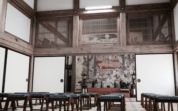 正法寺 法堂 涅槃図前に於いて